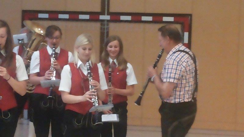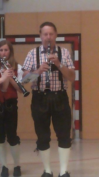 Zwischendurch wurden einige flotte Stücke gespielt und da ließ es sich der Jubilar nicht nehmen, persönlich auf der Klarinette mit zu machen. Hans sieht mit seinen 70 immer noch aus wie ein Mitte-Fünfziger und das Geheimnis dafür ist wohl sein Hobby, die Imkerei (neben der Musik) und die gute Pflege durch seine Frau Poldi.