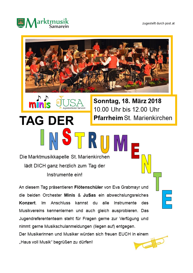 Es ist wieder soweit! Der Musikverein lädt alle interessierten Jugendlichen herzlich ein. Diesesmal allerdings ins Pfarrheim.
