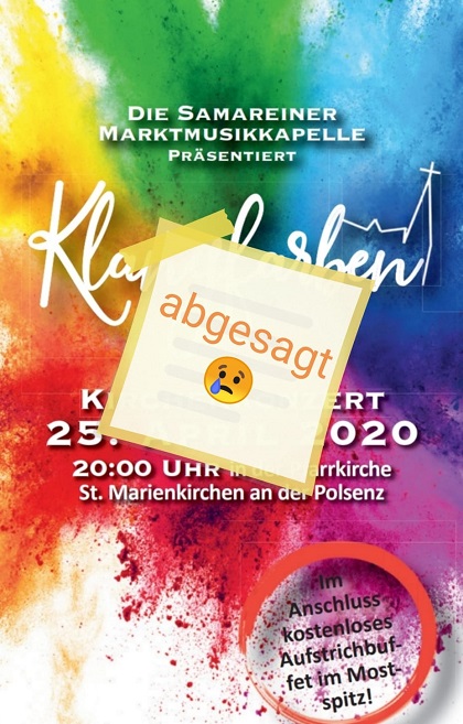 Die Corona-Krise und die damit einhergehenden Maßnahmen verschonen leider auch nicht den Musikverein Samarein. Die Marktmusikkapelle ist somit gezwungen, die für die nächsten Monate geplanten Veranstaltungen abzusagen. Konkret betroffen sind das für 25. April angesetzt gewesene Kirchenkonzert, die traditionelle 1.Mai-Ausrückung und auch das für Pfingstsonntag geplante Beerfassl-Rollin. Bei diesem Event wäre heuer das 10-jährige Jubiläum angestanden.
